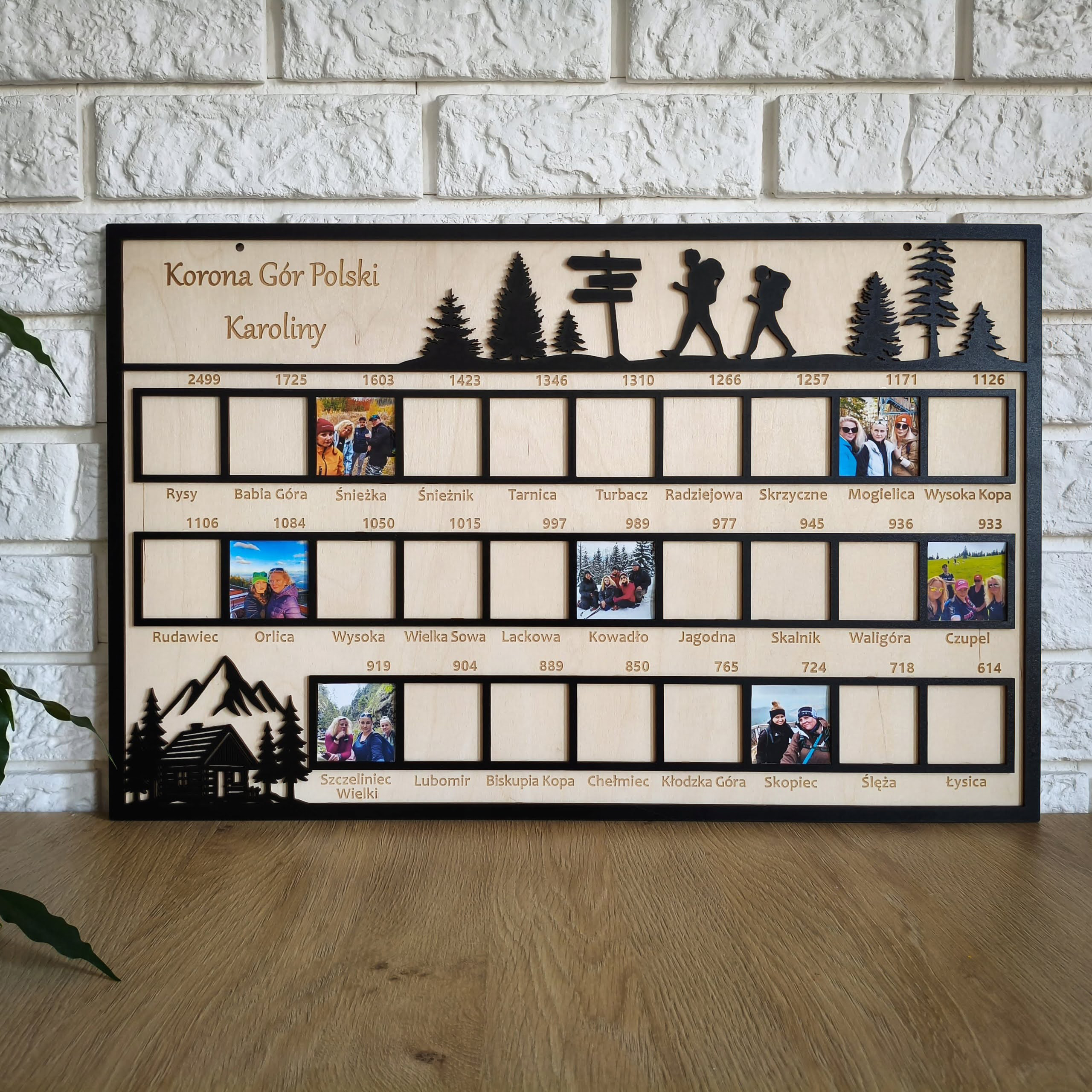 Drewniana tablica „Korona Gór Polski” to personalizowana ramka na zdjęcia wszystkich 28 szczytów KGP. Idealna pamiątka górskich wypraw oraz wyjątkowy prezent dla miłośników turystyki i podróży.