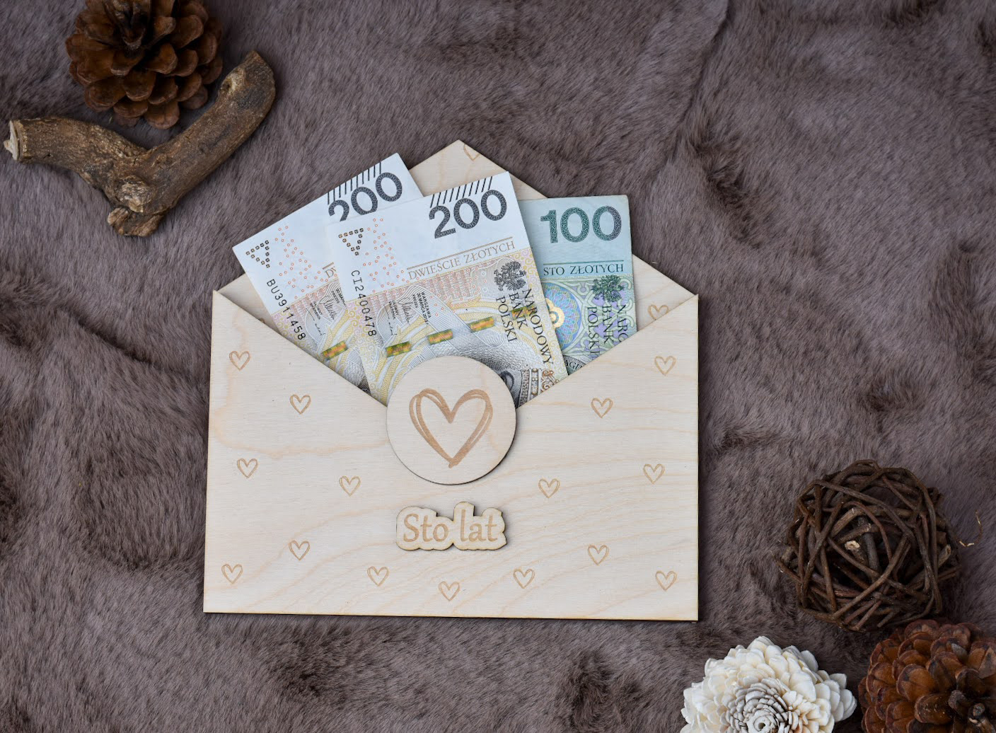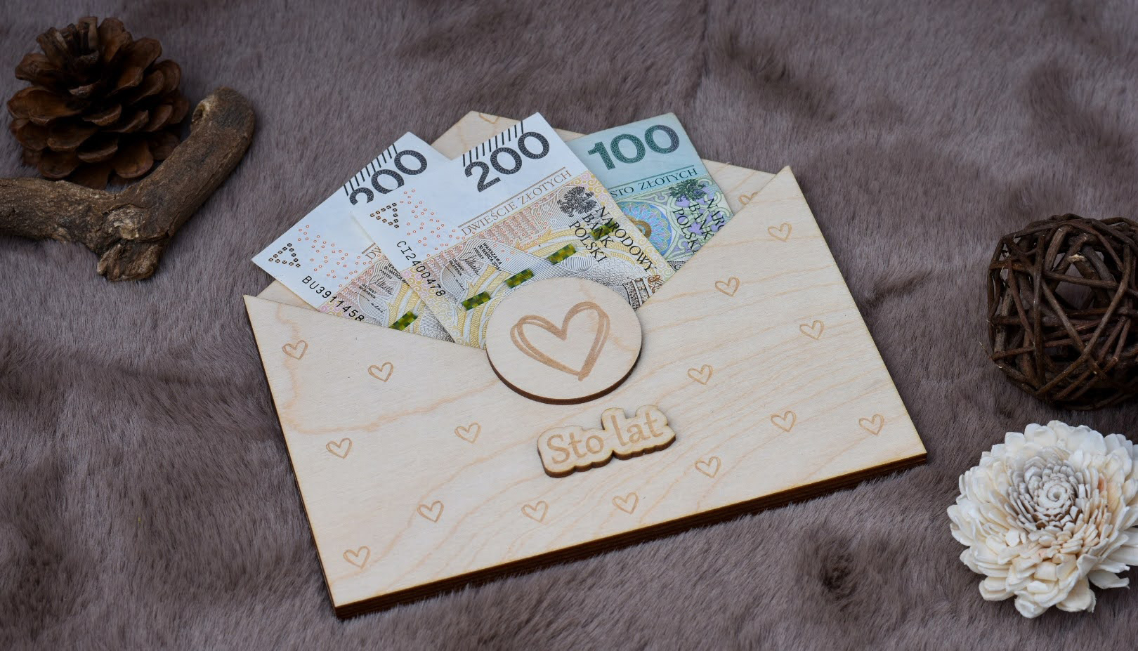 Drewniana koperta na pieniądze – „Sto lat”