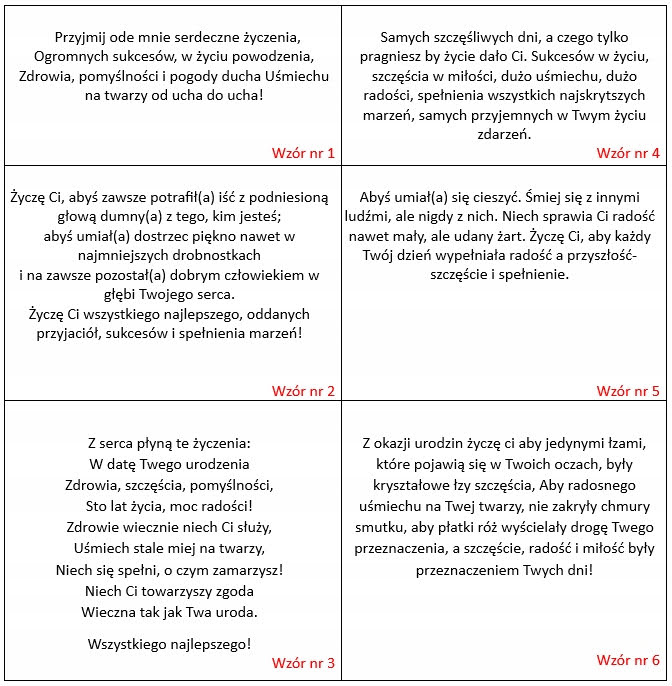 Treść życzeń